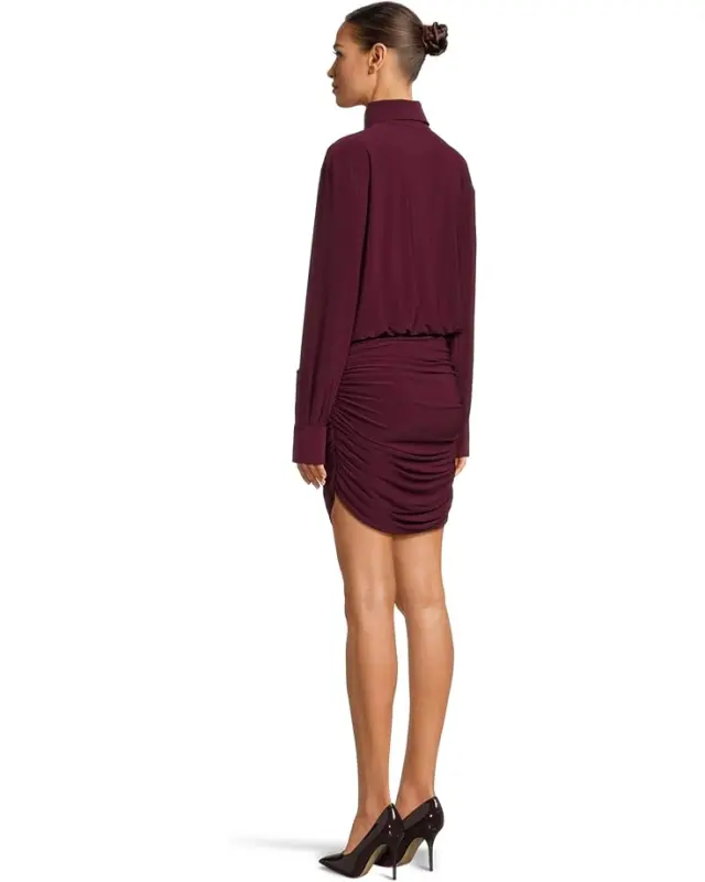 Women’s Norma Kamali Boyfriend NK Shirt Shirred Skirt Dress – Plum