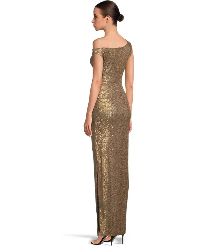 Women’s Norma Kamali Drop Shoulder Fitted Gown With Side Slit – Bronze