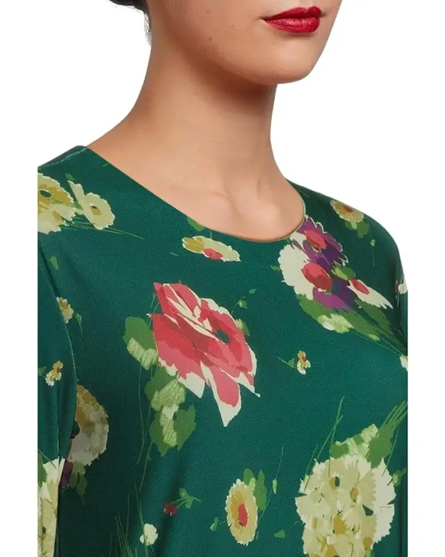 Women’s Norma Kamali Long Sleeve Crew Dress To Knee – Floral Green Multi
