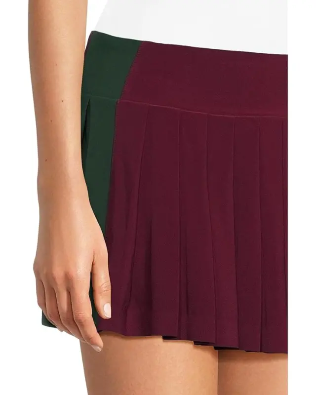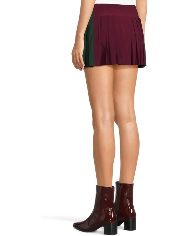 Women’s Norma Kamali Side Stripe Pleated Pickleball Skirt – Plum/Dark Emerald