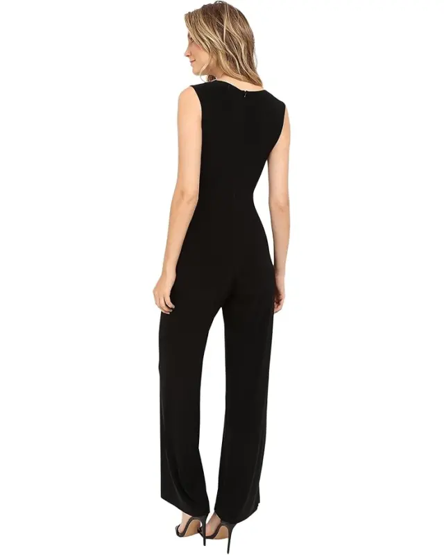 The seriously sassy will adore the Sleeveless Jumpsuit. This jumpsuit features a slim fit in the torso and relaxed leg. A smooth and slinky stretch poly jersey fabric creates a figure-flattering wear.