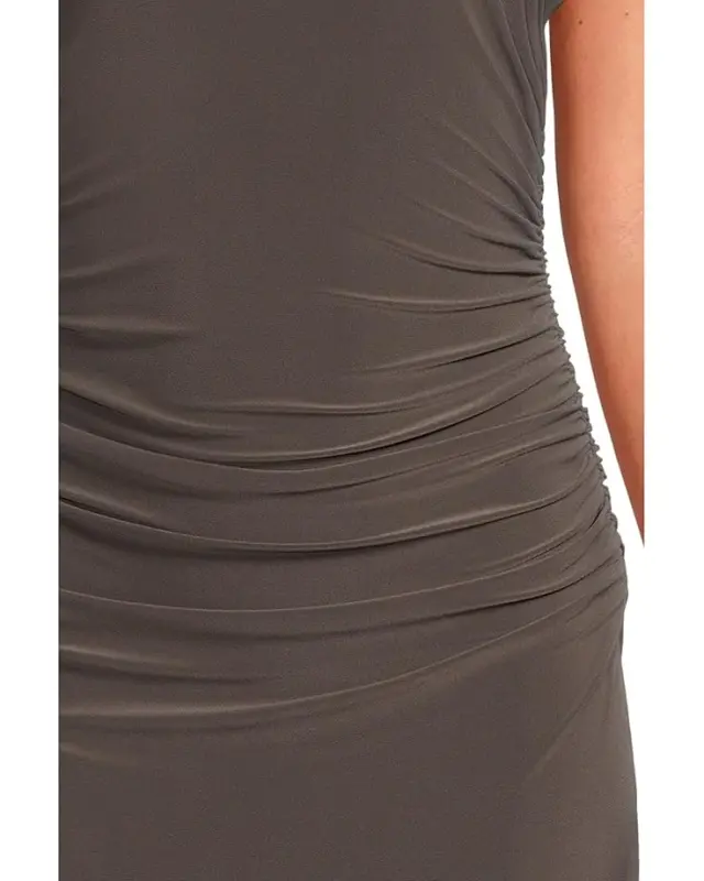 Women’s Norma Kamali Sleeveless Shirred Waist Gown – Espresso