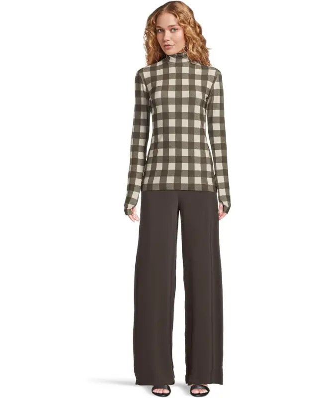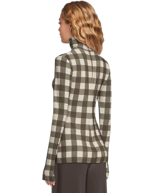 Women’s Norma Kamali Slim Fit Long Sleeve Turtle Top – Bark Box Plaid