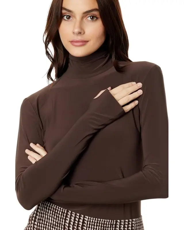 Women’s Norma Kamali Slim Fit Long Sleeve Turtle Top – Chocolate