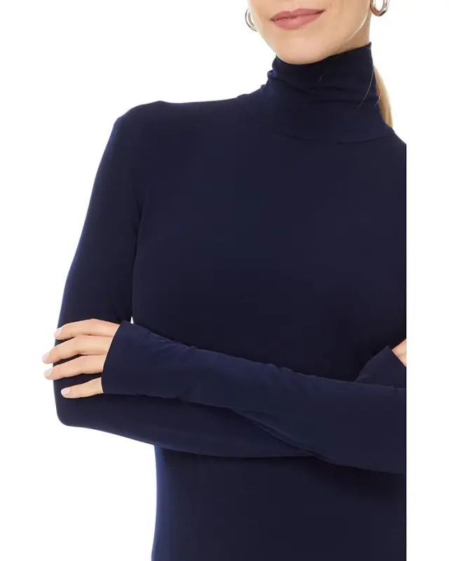 Women’s Norma Kamali Slim Fit Long Sleeve Turtle Top – True Navy