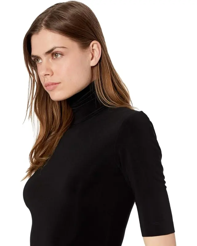 Women’s Norma Kamali Slim Fit Short Sleeve Turtle Top – Black