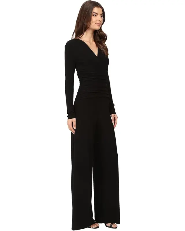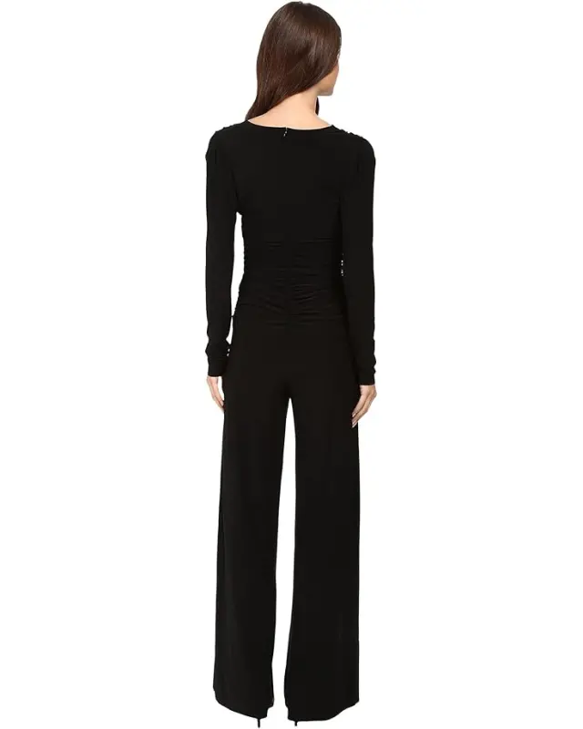 Women’s Norma Kamali V-Neck Long Sleeve Shirred Waist Jumpsuit – Black